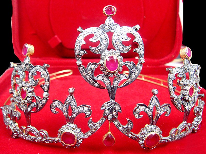 Birthday Crown 31 Carat Rose Cut Diamond & Ruby 58.75 Gms 925 Sterling Silver