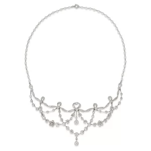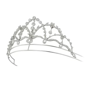 Garland Motif Pearl & Diamond Crown Tiara Necklace Set (8.50 Carats)
