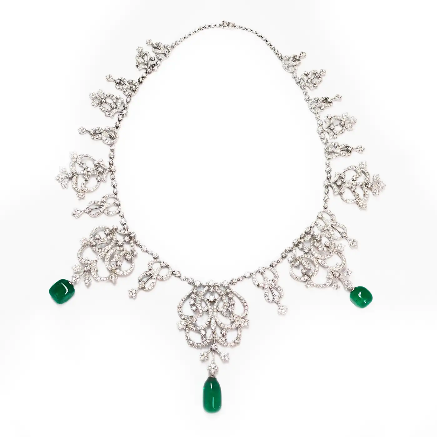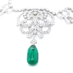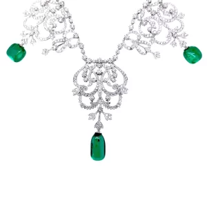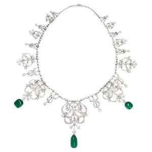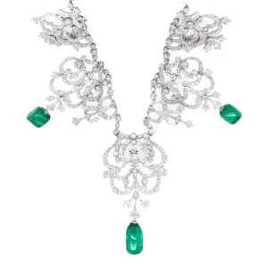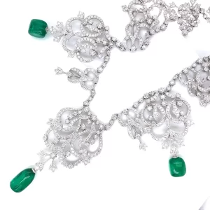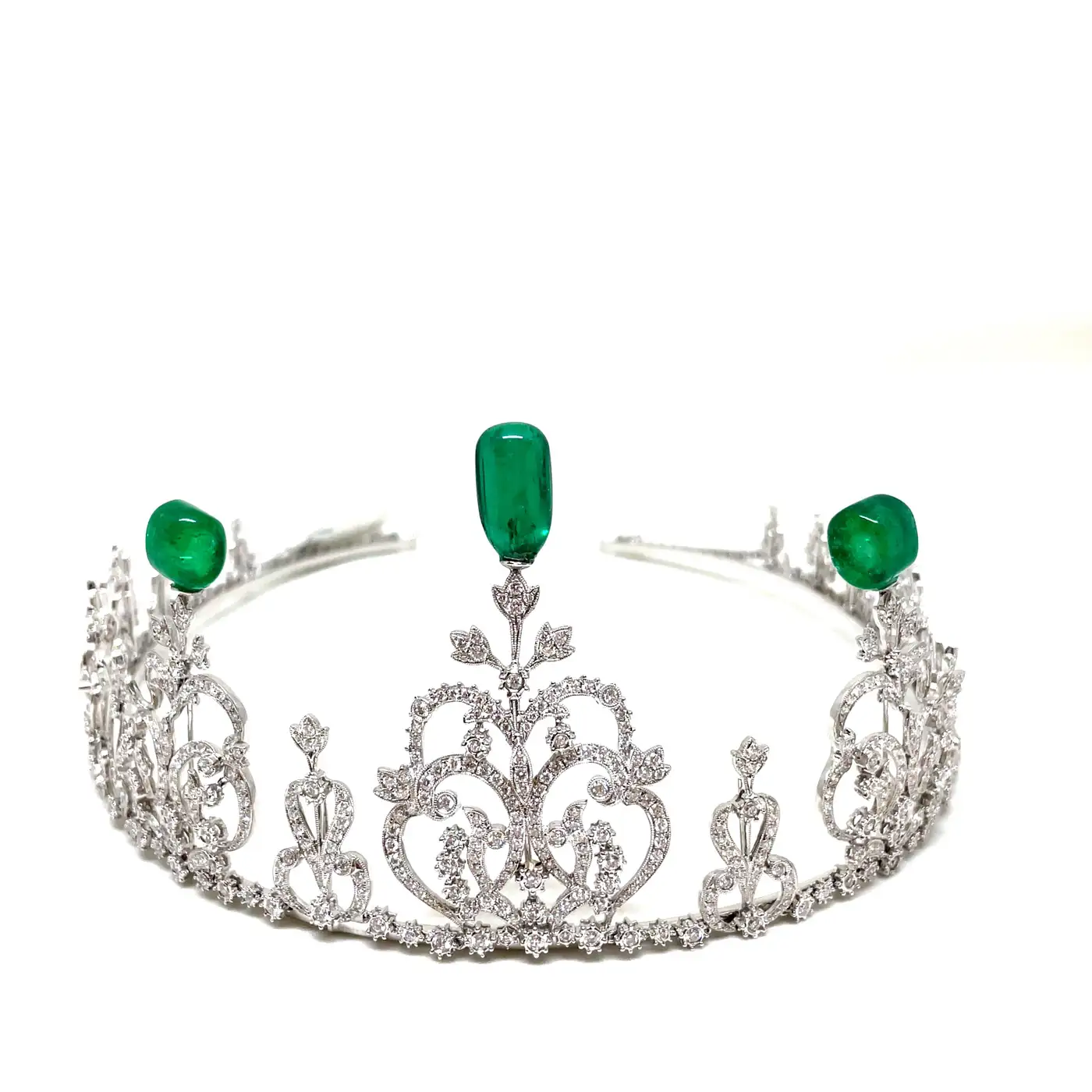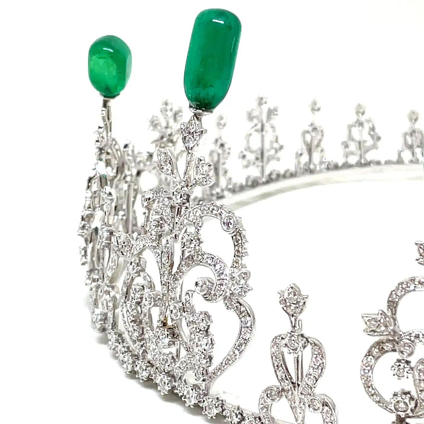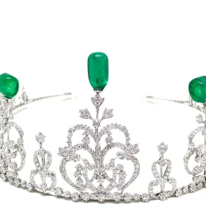 Regal Diamond & Emerald Necklace and Crown Tiara Set – 925 Sterling Silver | Costozon