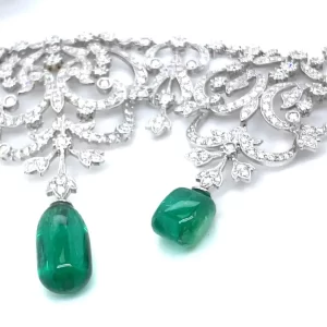 Step into a world of royal elegance with Costozon’s Regal Diamond & Emerald Necklace and Crown Tiara Set, meticulously crafted for those who seek timeless opulence. This exquisite duo captures the essence of vintage glamour with a modern touch, designed to make every bride or collector feel like royalty.