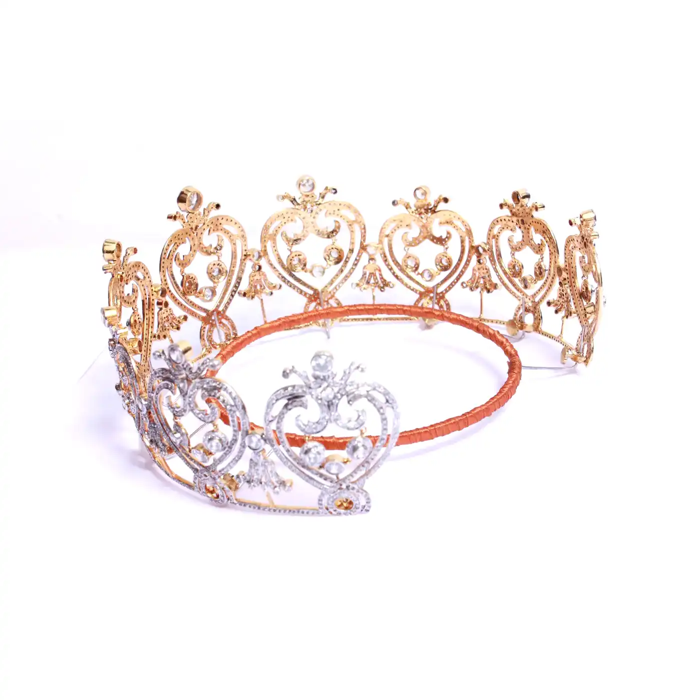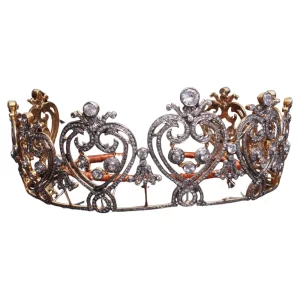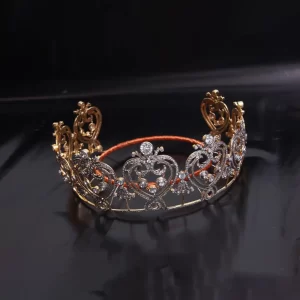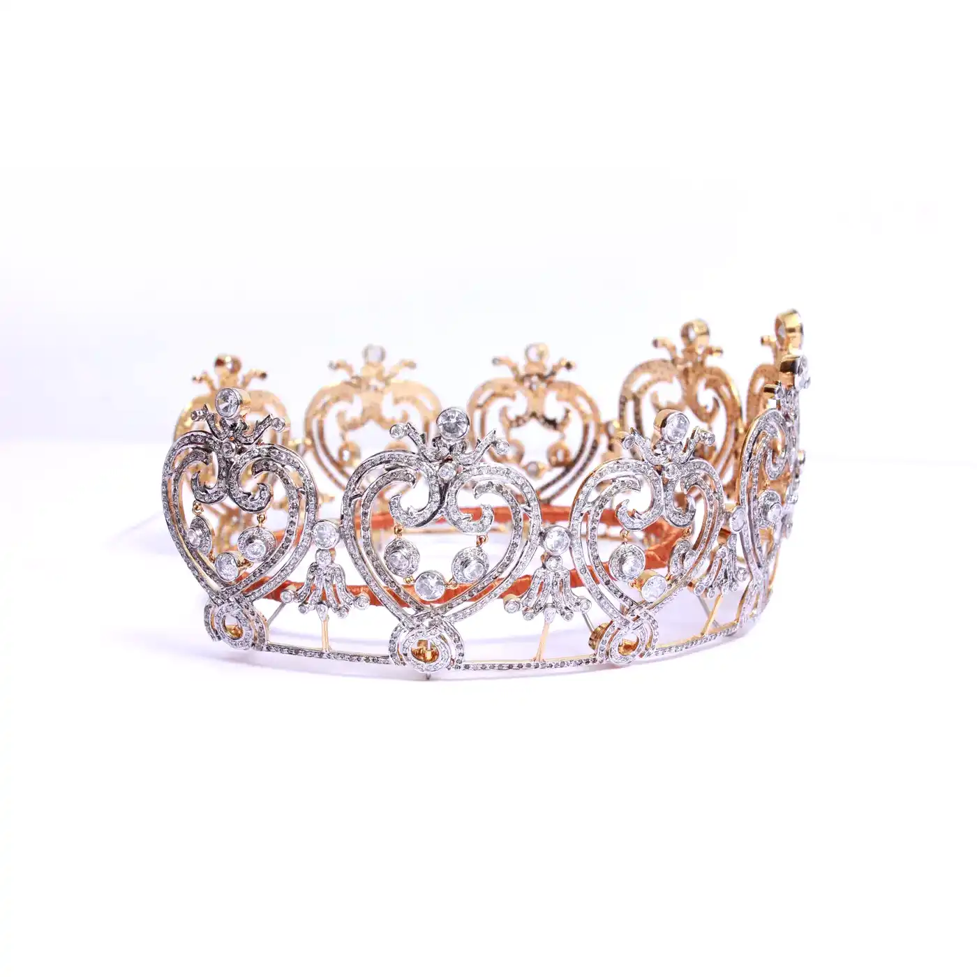 Royal Heart Motif Crown Tiara Convertible Crown Tiara Necklace Set with Brilliant Diamond – Dual-Tone Vintage Gold Finish (50 Carats)