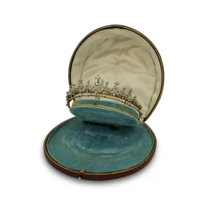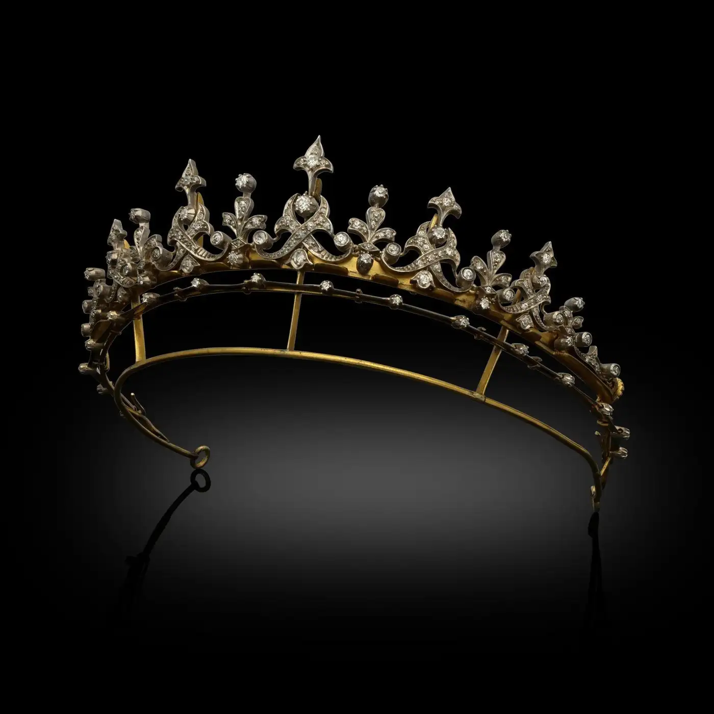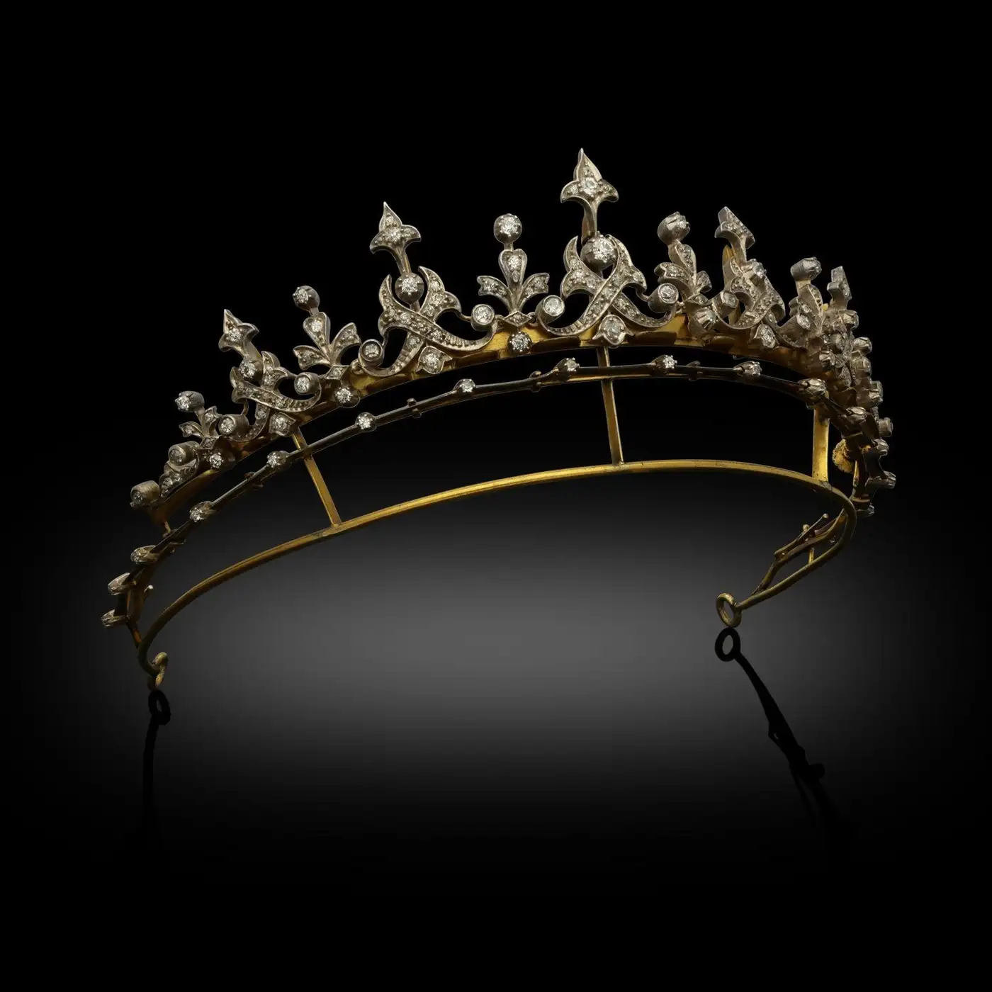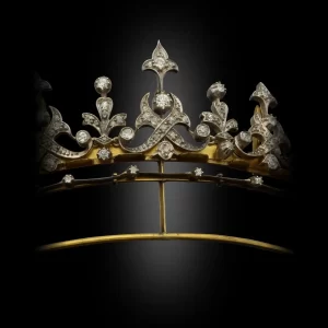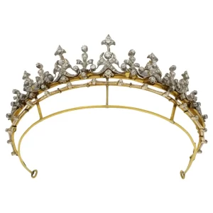 Victorian Fleur-de-Lis Diamond Convertible Crown Tiara Necklace Set in Regal Yellow Gold – 11 Carats
