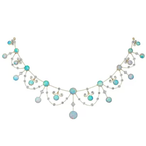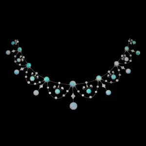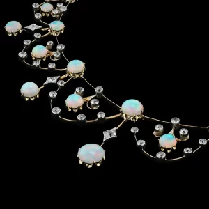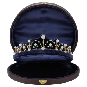Celestial Opal & Diamond Tiara in 14K Yellow Gold Finish – 25 Carats