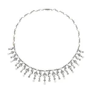 Edwardian Natural Pearl & Diamond Floral Spray Tiara Necklace Set