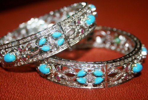 costozon polki bangles Total carat weight 33.64 TCW, 13.68 Carat Natural Rose cut Diamond and Carat Polki Uncut Diamond Studded in 80.6 Gms 925 Sterling Silver vintage diamond jewelry Online with IGL Certification, Free Shipping, BIS Hallmark, 30 Day Easy Return