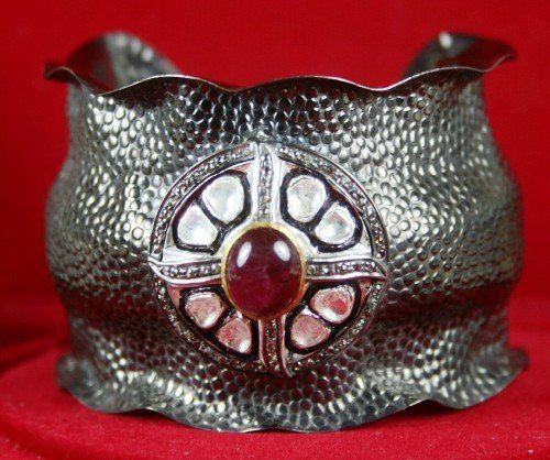costozon polki bracelet Total carat weight 7.12 TCW, 0.77 Carat Natural Rose cut Diamond and 0.55 Carat Polki Uncut Diamond Studded in 46.76 Gms 925 Sterling Silver antique jewelry Online with IGL Certification, Free Shipping, BIS Hallmark, 30 Day Easy Return