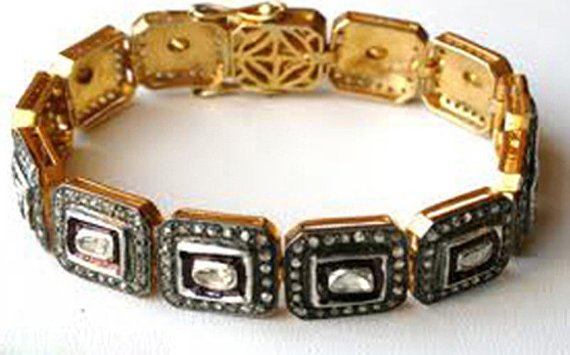 costozon polki bracelet Total carat weight 8.27 TCW, 5.12 Carat Natural Rose cut Diamond and 3.15 Carat Polki Uncut Diamond Studded in 31.45 Gms 925 Sterling Silver vintage art deco jewelry Online with IGL Certification, Free Shipping, BIS Hallmark, 30 Day Easy Return