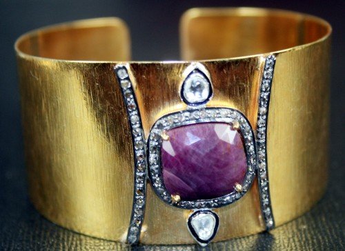 costozon victorian bracelet Total carat weight 10.33 TCW, 0.13 Carat Natural Rose cut Diamond and 0.9 Carat Polki Uncut Diamond Studded in 36.26 Gms 925 Sterling Silver fine antique jewelry Online with IGL Certification, Free Shipping, BIS Hallmark, 30 Day Easy Return