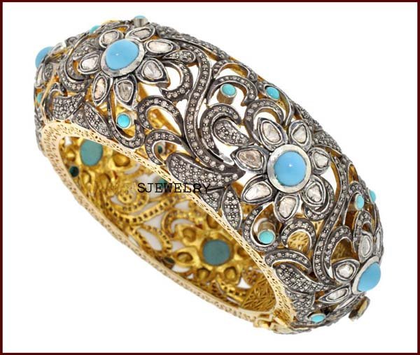 vintage bracelets 16.3 Tcw Tourquise Rose Cut Diamond 925 Sterling Silver antique vintage jewelry