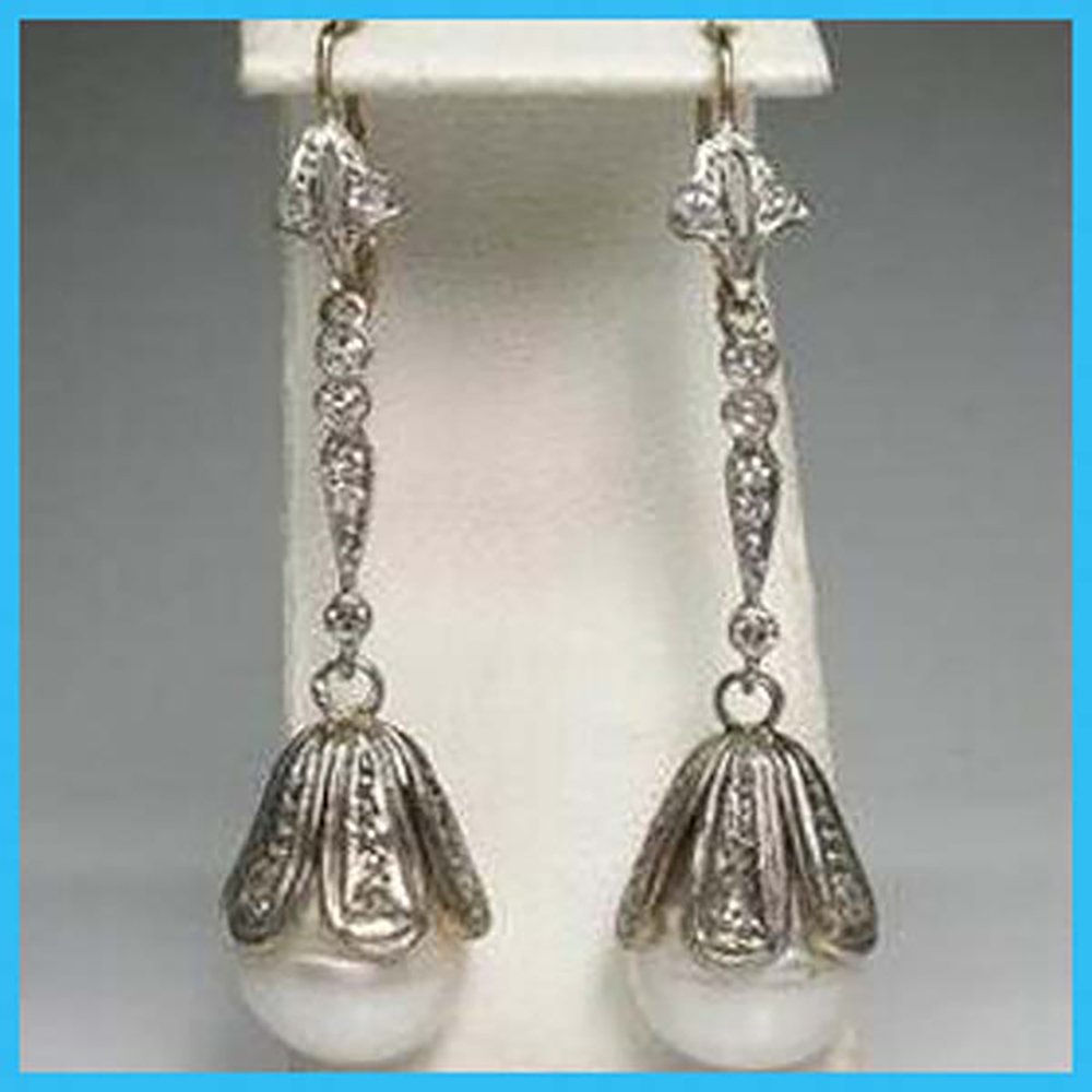 antique earrings 3 Tcw Pearl Rose Cut Diamond 925 Sterling Silver antique vintage jewelry