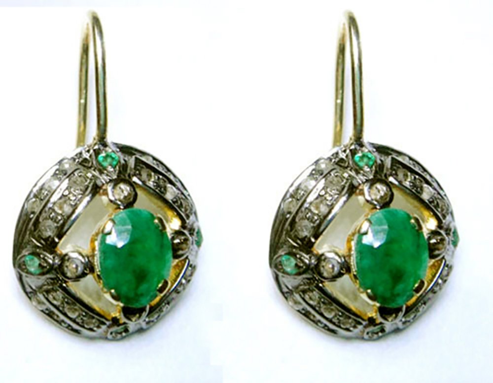 costozon polki earrings Total carat weight 2.3 TCW, 1.1 Carat Natural Rose cut Diamond, Carat Polki Uncut Diamond and 1.2 Carat Emerald Studded in 5.5 Gms 925 Sterling Silver vintage jewelry Online with IGL Certification, Free Shipping, BIS Hallmark, 30 Day Easy Return