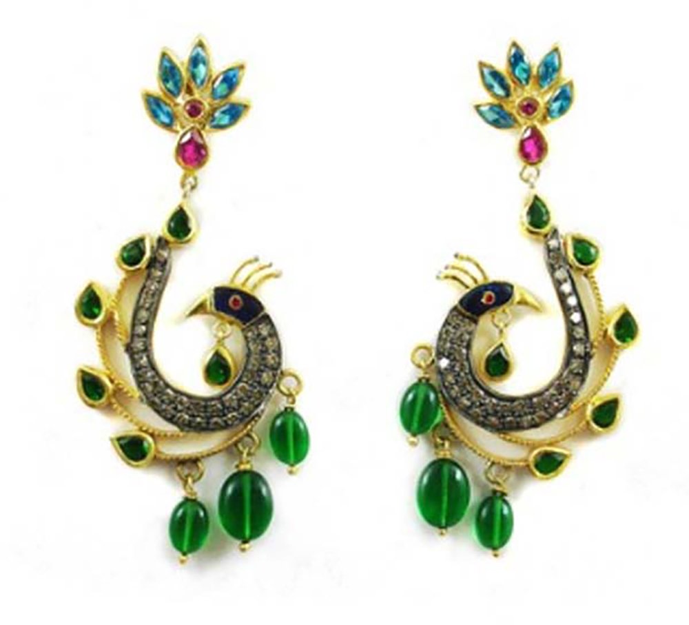 costozon polki earrings Total carat weight 4.2 TCW, 1.2 Carat Natural Rose cut Diamond and 3 Carat topaz, emerald Studded in 7.8 Gms 925 Sterling Silver vintage jewelry Online with IGL Certification, Free Shipping, BIS Hallmark, 30 Day Easy Return