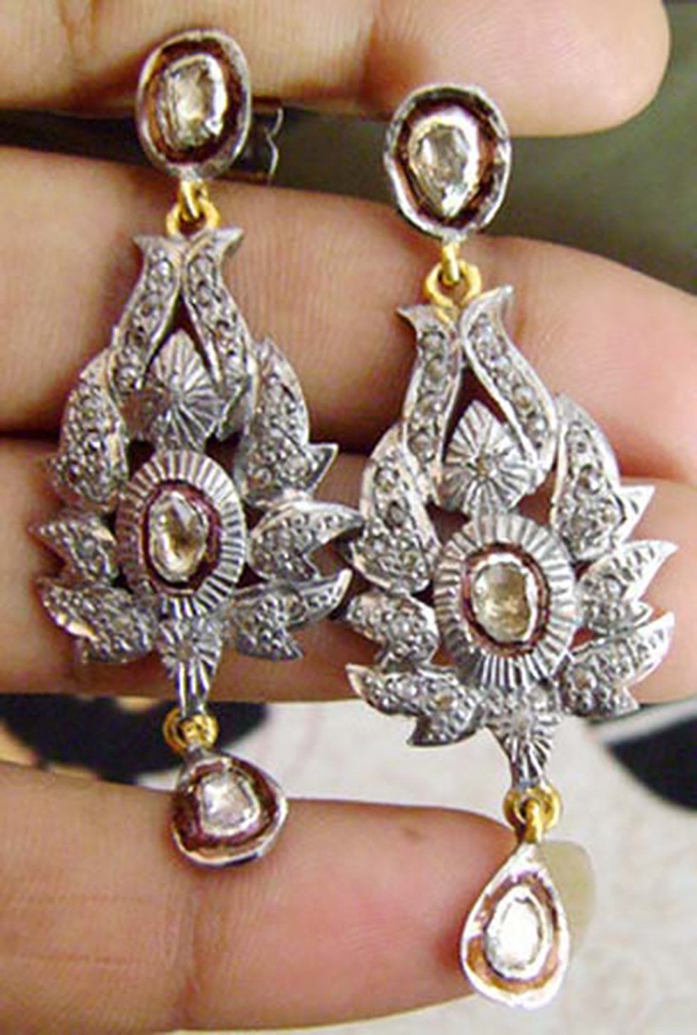 costozon rose cut earrings Total carat weight 3.1 TCW, 2.5 Carat Natural Rose cut Diamond and 0.6 Carat Polki Uncut Diamond Studded in 10.85 Gms 925 Sterling Silver vintage style jewelry Online with IGL Certification, Free Shipping, BIS Hallmark, 30 Day Easy Return