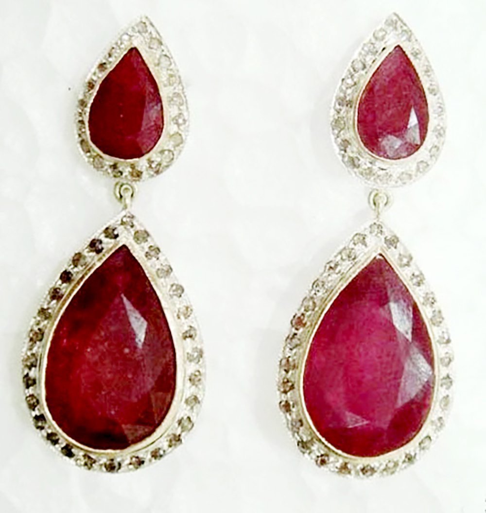 costozon rose cut earrings Total carat weight 6.5 TCW, 2 Carat Natural Rose cut Diamond and 4.5 Carat Ruby Studded in 10 Gms 925 Sterling Silver vintage style jewelry Online with IGL Certification, Free Shipping, BIS Hallmark, 30 Day Easy Return