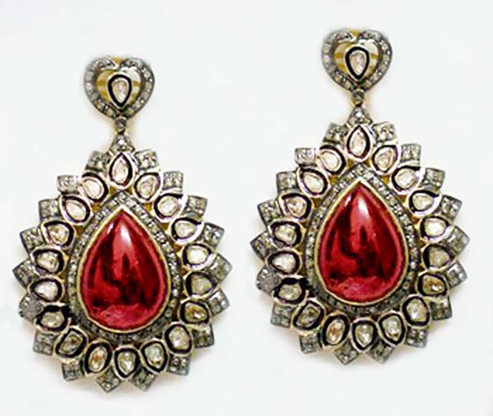 costozon antique diamond earrings Total carat weight 8.65 TCW, 2.65 Carat Natural Rose cut Diamond, 2 Carat Polki Uncut Diamond and 4 Carat Ruby Studded in 13.265 Gms 925 Sterling Silver antique vintage jewelry Online with IGL Certification, Free Shipping, BIS Hallmark, 30 Day Easy Return