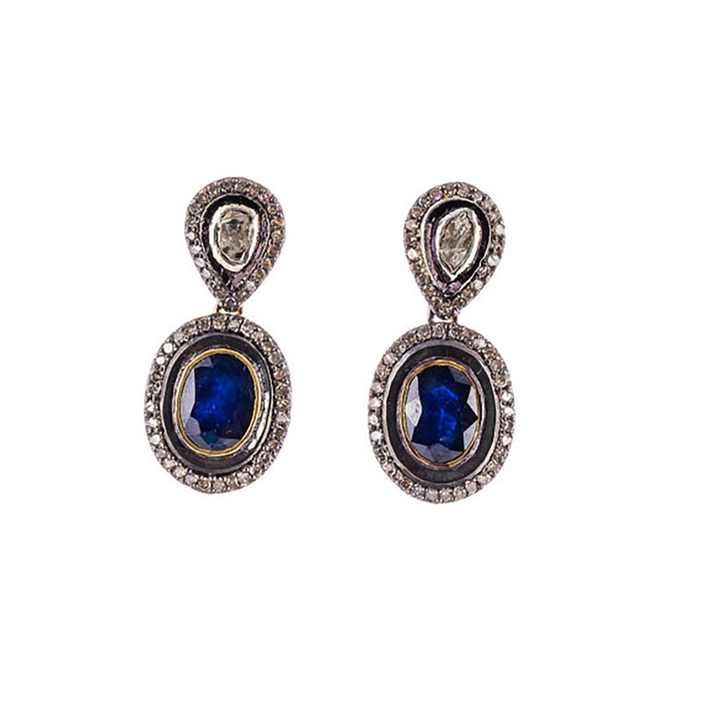 uncut earrings 4.1 Tcw Blue Sapphire Rose Cut Diamond 925 Sterling Silver antique jewelry