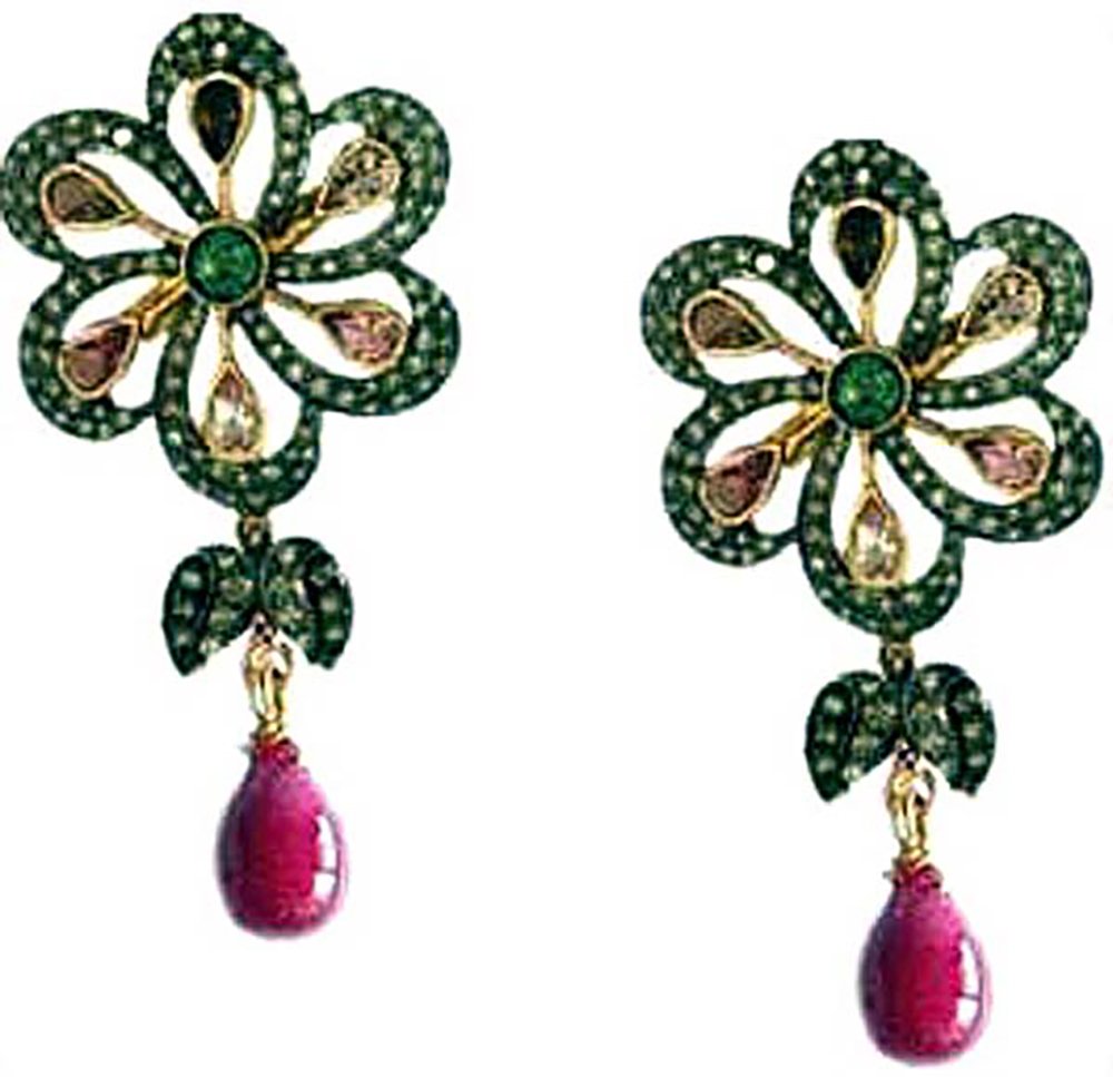 costozon uncut earrings Total carat weight 6.5 TCW, 3 Carat Natural Rose cut Diamond and 3.5 Carat Ruby, Emerald Studded in 11.25 Gms 925 Sterling Silver vintage diamond jewelry Online with IGL Certification, Free Shipping, BIS Hallmark, 30 Day Easy Return