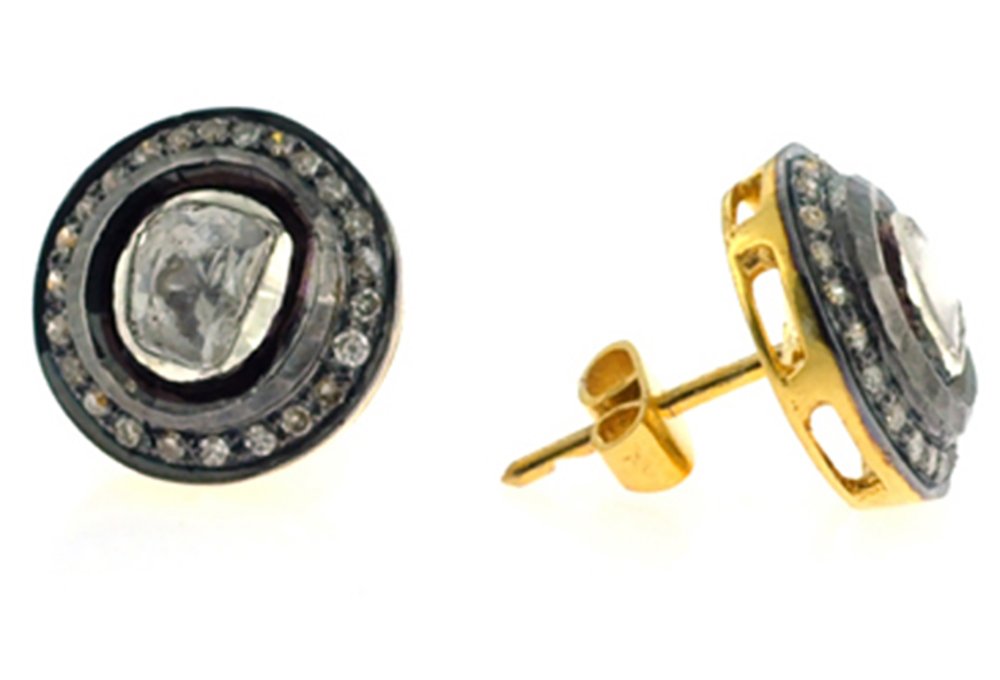 costozon victorian earrings Total carat weight 1.4 TCW, 1 Carat Natural Rose cut Diamond and 0.4 Carat Polki Uncut Diamond Studded in 4.9 Gms 925 Sterling Silver vintage art deco jewelry Online with IGL Certification, Free Shipping, BIS Hallmark, 30 Day Easy Return