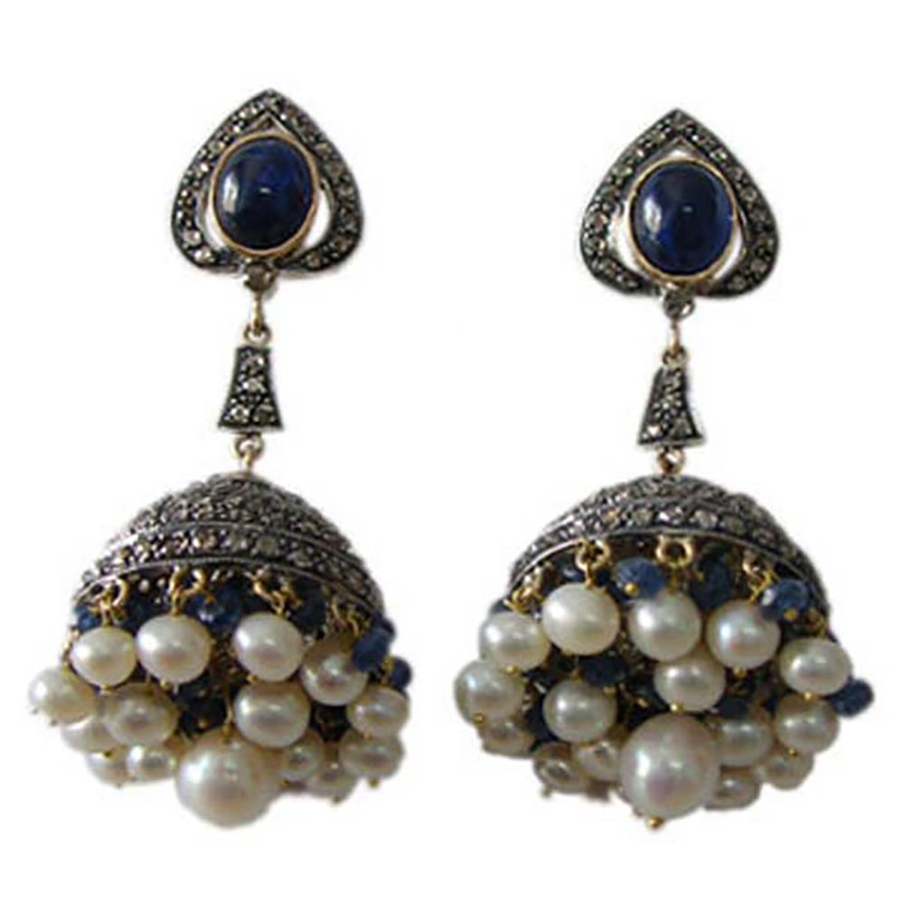 costozon victorian earrings Total carat weight 19.4 TCW, 2.4 Carat Natural Rose cut Diamond and 17 Carat sapphire, pearl Studded in 13 Gms 925 Sterling Silver fine antique jewelry Online with IGL Certification, Free Shipping, BIS Hallmark, 30 Day Easy Return