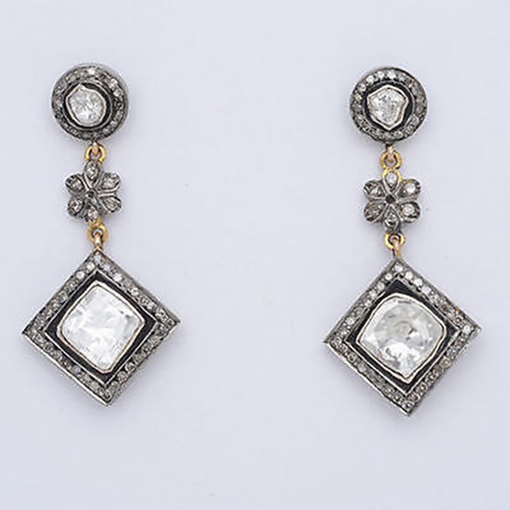 costozon victorian earrings Total carat weight 2.75 TCW, 1.6 Carat Natural Rose cut Diamond and Carat Studded in 13.75 Gms 925 Sterling Silver fine antique jewelry Online with IGL Certification, Free Shipping, BIS Hallmark, 30 Day Easy Return