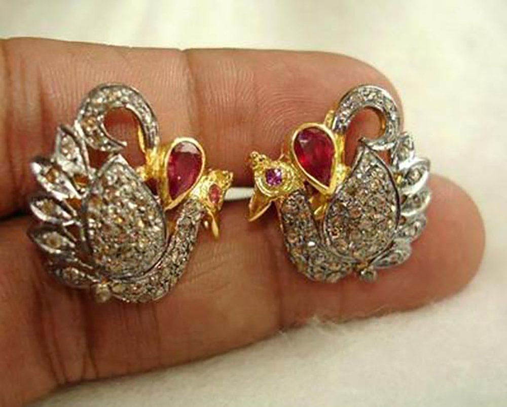 costozon victorian earrings Total carat weight 2 TCW, 1 Carat Natural Rose cut Diamond and Carat Polki Uncut Diamond Studded in 3.5 Gms 925 Sterling Silver fine antique jewelry Online with IGL Certification, Free Shipping, BIS Hallmark, 30 Day Easy Return