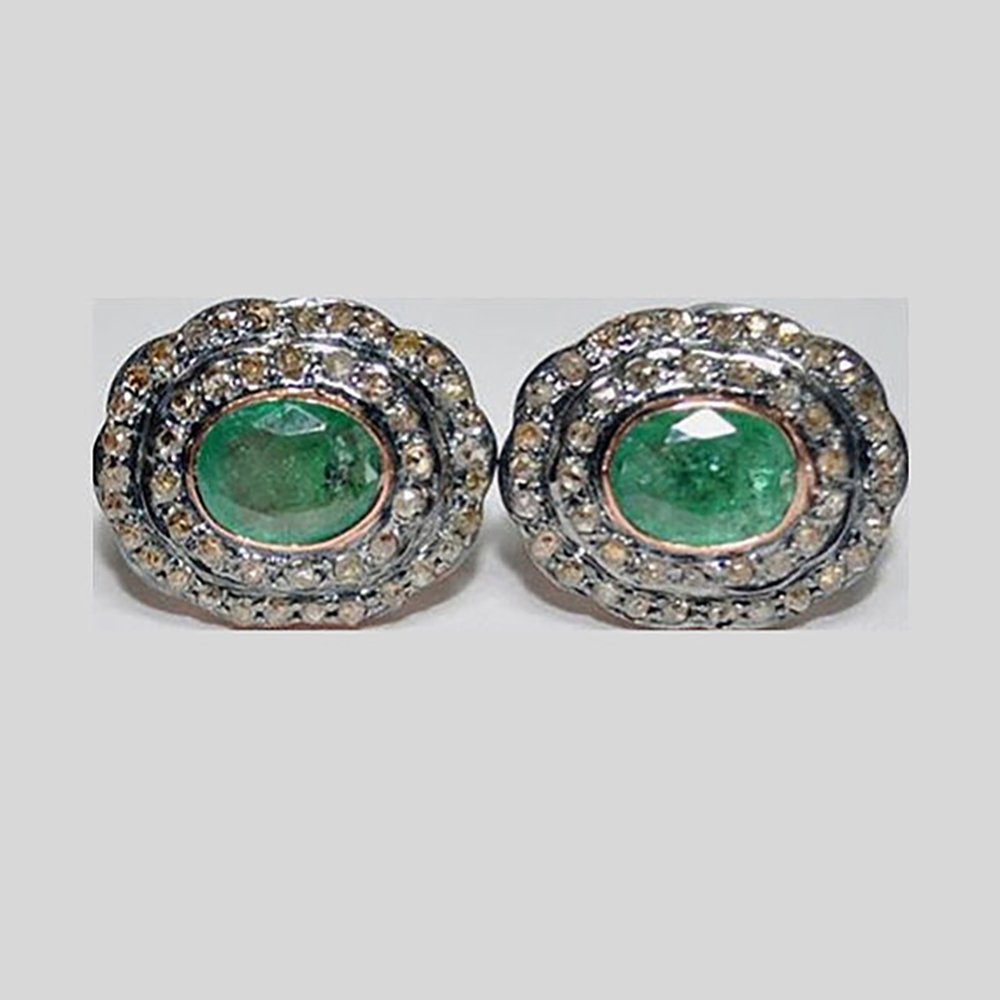 victorian earrings 3.75 Tcw Emerald Rose Cut Diamond 925 Sterling Silver vintage jewelry