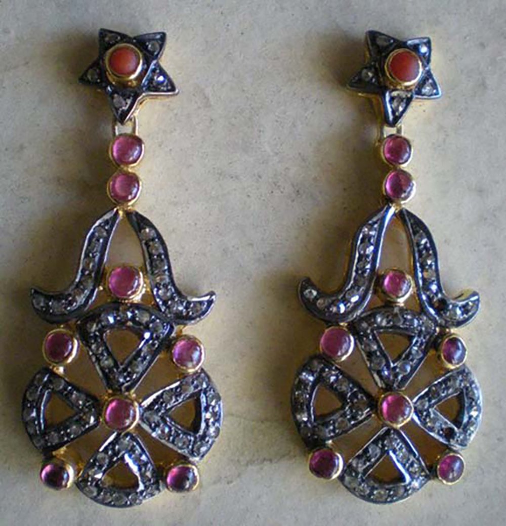 costozon victorian earrings Total carat weight 4.3 TCW, 2.5 Carat Natural Rose cut Diamond and 1.8 Carat Ruby Studded in 12.5 Gms 925 Sterling Silver vintage art deco jewelry Online with IGL Certification, Free Shipping, BIS Hallmark, 30 Day Easy Return
