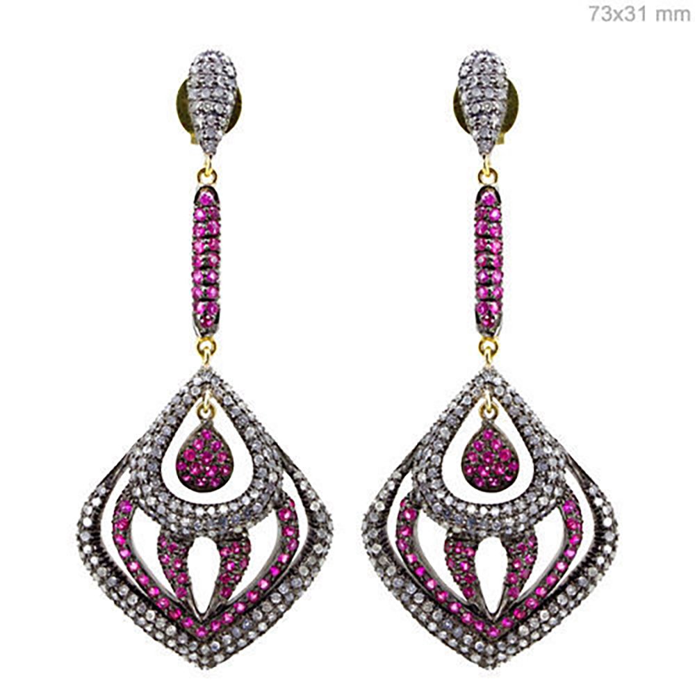 costozon victorian earrings Total carat weight 6.45 TCW, 3.45 Carat Natural Rose cut Diamond and Carat Polki Uncut Diamond Studded in 19 Gms 925 Sterling Silver fine antique jewelry Online with IGL Certification, Free Shipping, BIS Hallmark, 30 Day Easy Return