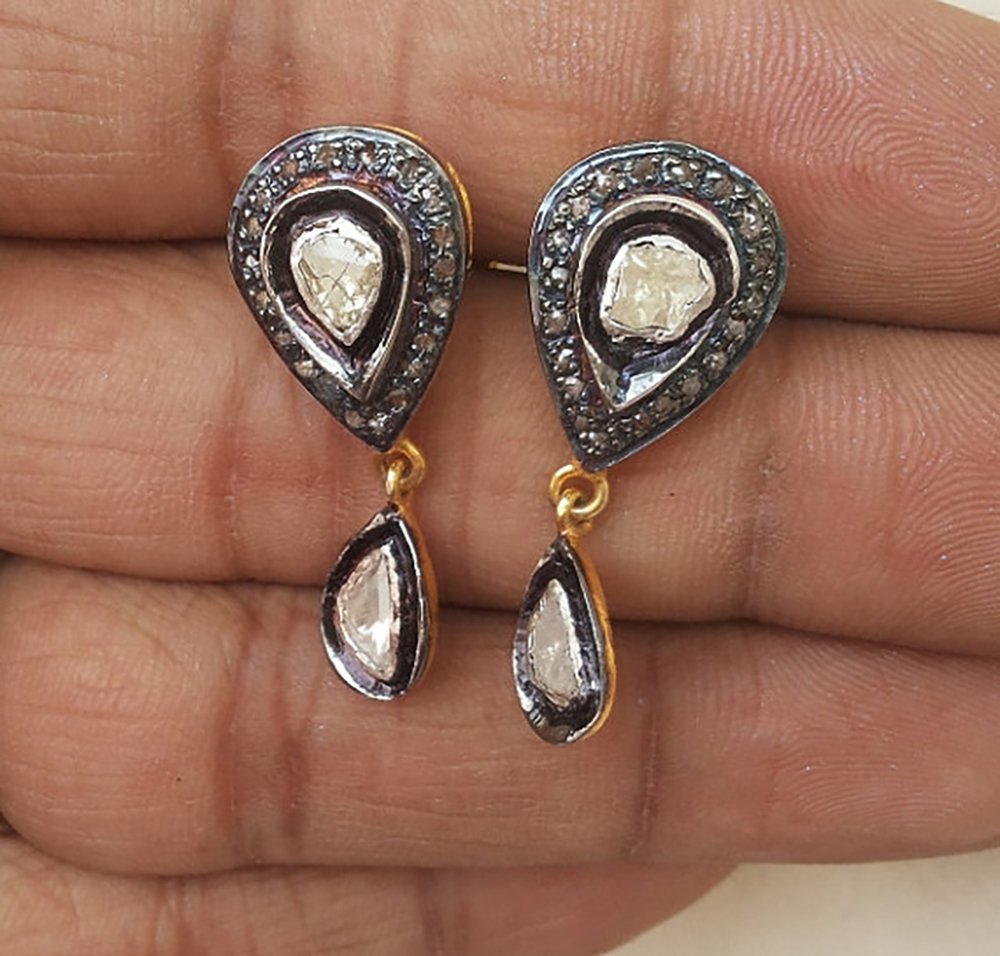 costozon vintage earrings Total carat weight 1.4 TCW, 0.8 Carat Natural Rose cut Diamond and Carat Studded in 7 Gms 925 Sterling Silver art deco jewelry Online with IGL Certification, Free Shipping, BIS Hallmark, 30 Day Easy Return