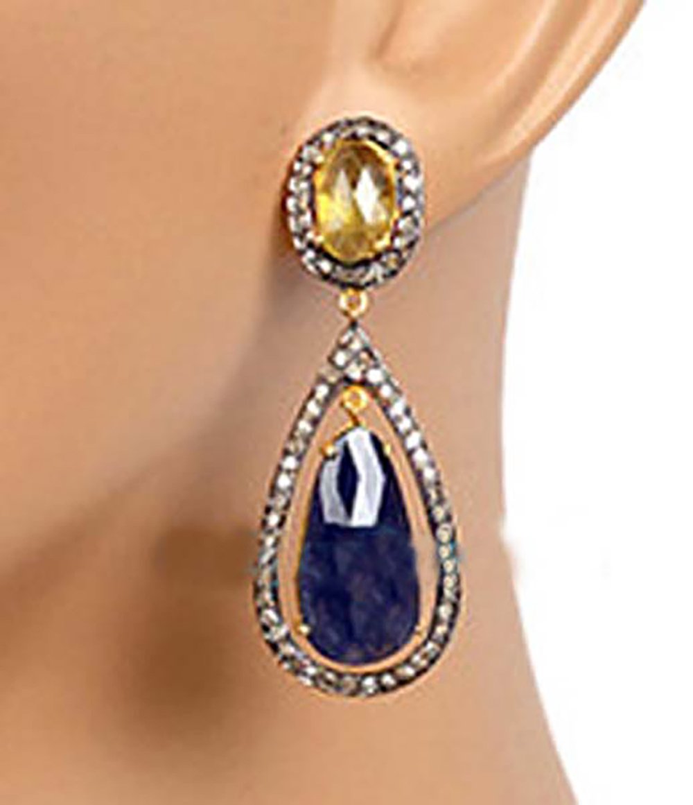 costozon vintage earrings Total carat weight 18.4 TCW, 2.4 Carat Natural Rose cut Diamond and Carat Polki Uncut Diamond Studded in 12 Gms 925 Sterling Silver art deco jewelry Online with IGL Certification, Free Shipping, BIS Hallmark, 30 Day Easy Return
