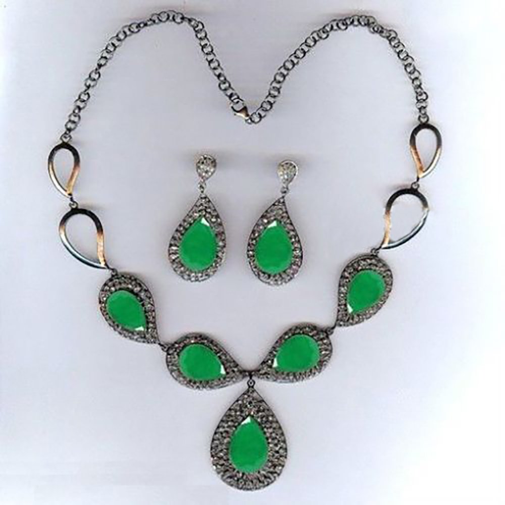 costozon vintage diamond necklace Total carat weight 25.7 TCW, 5.7 Carat Natural Rose cut Diamond and 20 Carat Emerald Studded in 28.5 Gms 925 Sterling Silver reproduction jewelry Online with IGL Certification, Free Shipping, BIS Hallmark, 30 Day Easy Return