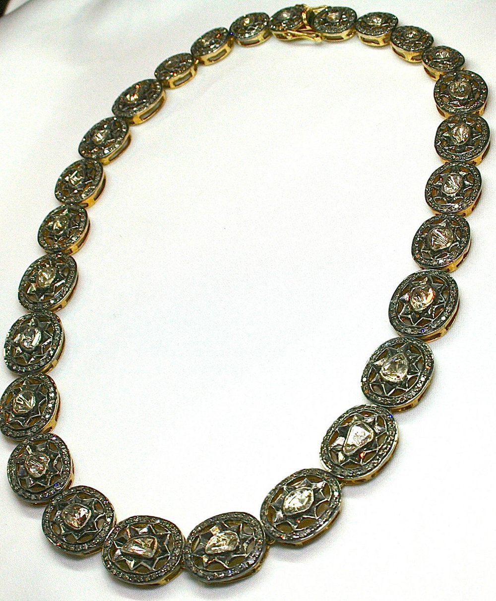 costozon rose cut diamond necklace Total carat weight 10.4 TCW, 7.8 Carat Natural Rose cut Diamond and 2.6 Carat Polki Uncut Diamond Studded in 52 Gms 925 Sterling Silver vintage antique jewelry Online with IGL Certification, Free Shipping, BIS Hallmark, 30 Day Easy Return