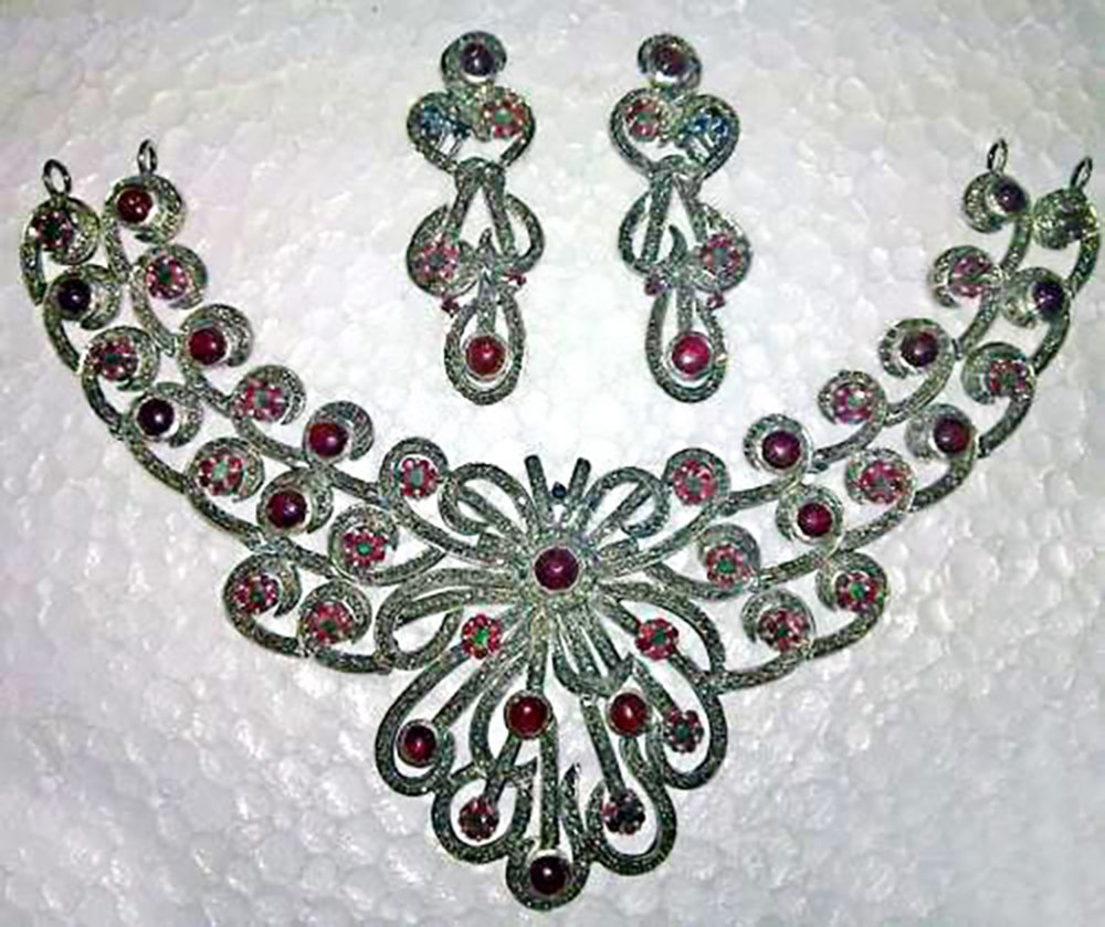 costozon vintage necklaces Total carat weight 36 TCW, 16 Carat Natural Rose cut Diamond and 20 Carat Ruby, Sapphire Studded in 80 Gms 925 Sterling Silver antique style jewelry Online with IGL Certification, Free Shipping, BIS Hallmark, 30 Day Easy Return