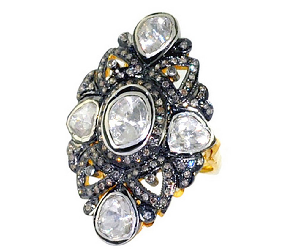 costozon antique rings Total carat weight 1.95 TCW, 1.45 Carat Natural Rose cut Diamond Studded in 9.75 Gms 925 Sterling Silver antique vintage jewelry Online with IGL Certification, Free Shipping, BIS Hallmark, 30 Day Easy Return