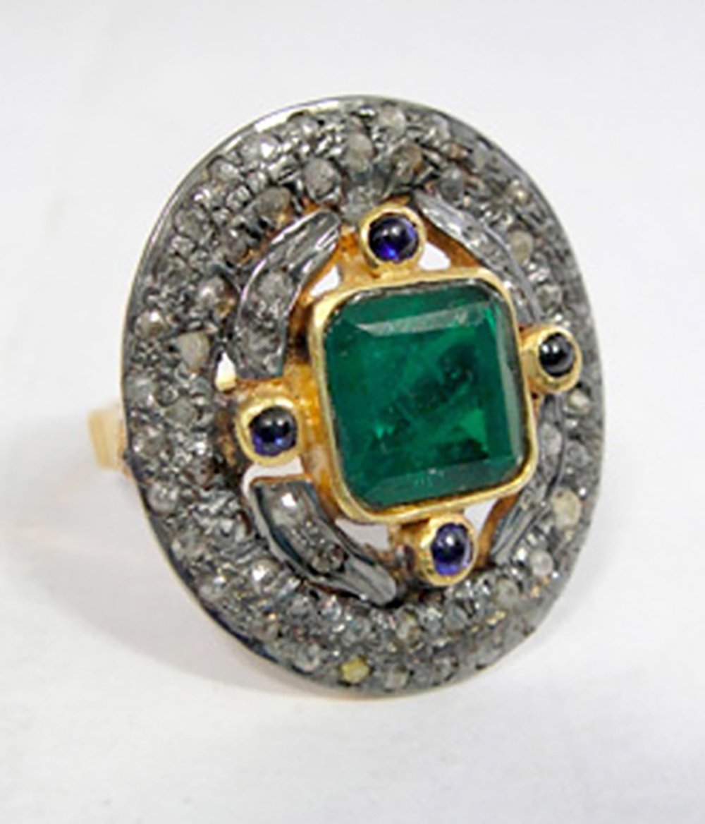 costozon antique rings Total carat weight 5.08 TCW, 1.68 Carat Natural Rose cut Diamond and 3.4 Carat Emerald, Sapphire Studded in 8.4 Gms 925 Sterling Silver vintage art deco jewelry Online with IGL Certification, Free Shipping, BIS Hallmark, 30 Day Easy Return