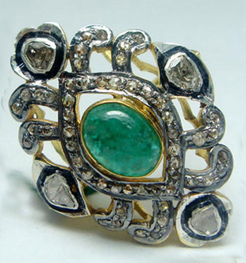 polki rings 2.9 Tcw Emerald Rose Cut Diamond 925 Sterling Silver antique jewelry