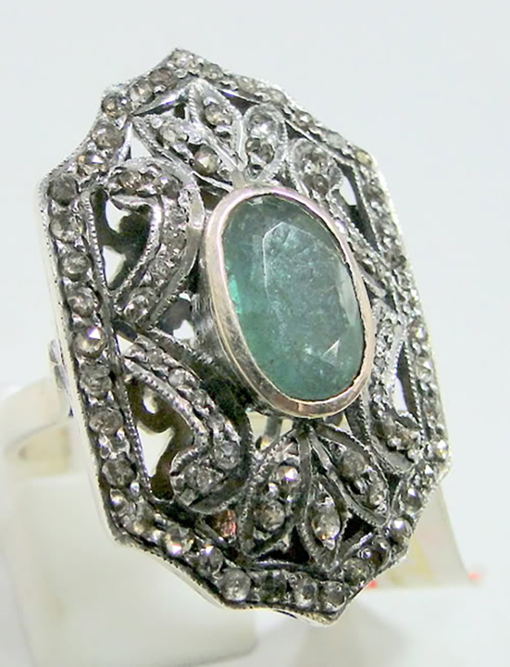 costozon rose cut rings Total carat weight 4 TCW, 2 Carat Natural Rose cut Diamond and 2 Carat Emerald Studded in 10 Gms 925 Sterling Silver fine antique jewelry Online with IGL Certification, Free Shipping, BIS Hallmark, 30 Day Easy Return