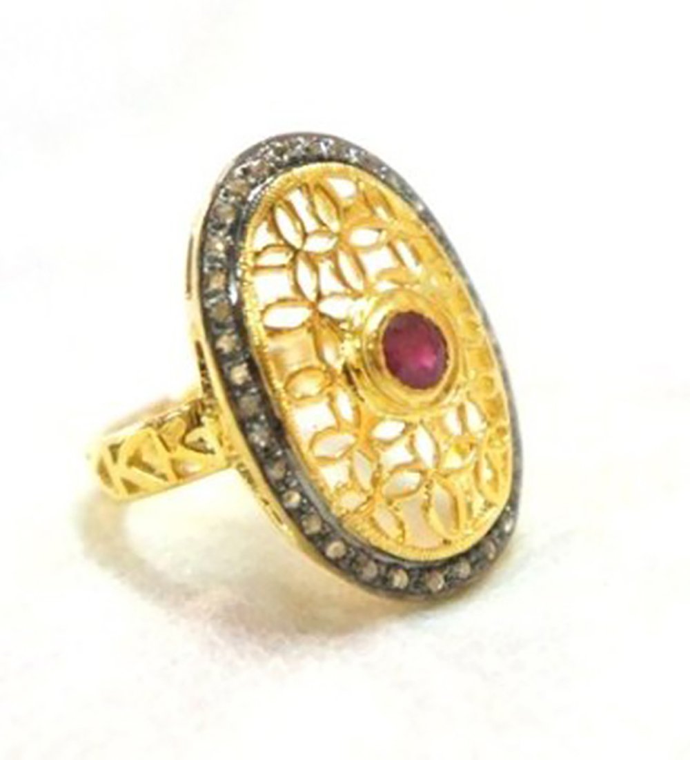 costozon uncut ring Total carat weight 1.1 TCW, 0.8 Carat Natural Rose cut Diamond and 0.3 Carat Ruby Studded in 4 Gms 925 Sterling Silver vintage jewelry Online with IGL Certification, Free Shipping, BIS Hallmark, 30 Day Easy Return