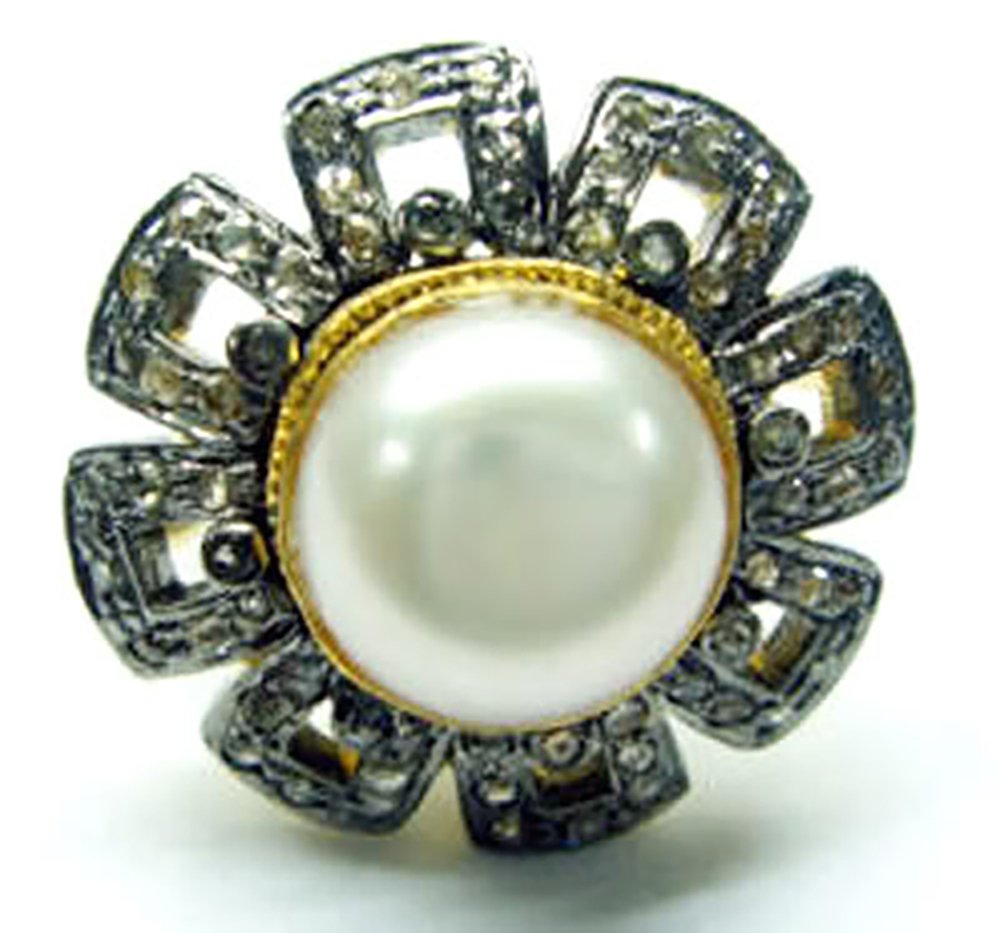 costozon uncut ring Total carat weight 4.4 TCW, 1.4 Carat Natural Rose cut Diamond and 3 Carat Pearl Studded in 7 Gms 925 Sterling Silver vintage style jewelry Online with IGL Certification, Free Shipping, BIS Hallmark, 30 Day Easy Return