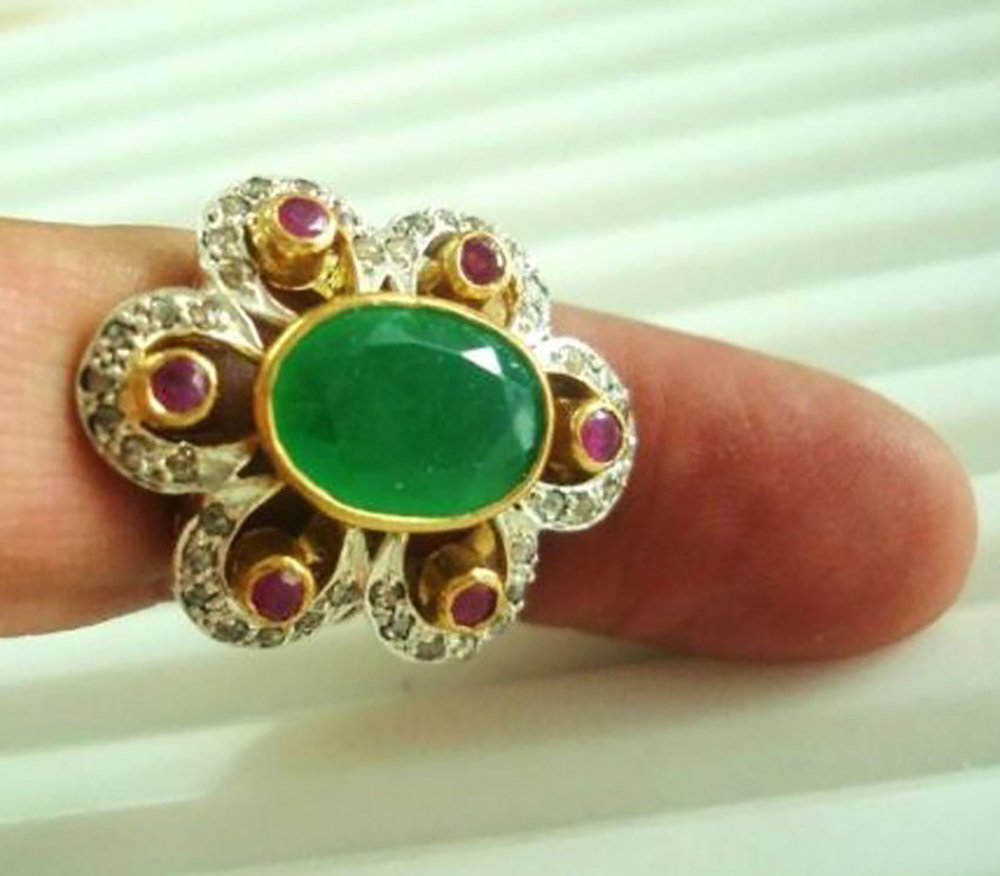 costozon uncut ring Total carat weight 4 TCW, 1 Carat Natural Rose cut Diamond and 3 Carat Ruby, Emerald Studded in 5.53 Gms 925 Sterling Silver vintage diamond jewelry Online with IGL Certification, Free Shipping, BIS Hallmark, 30 Day Easy Return
