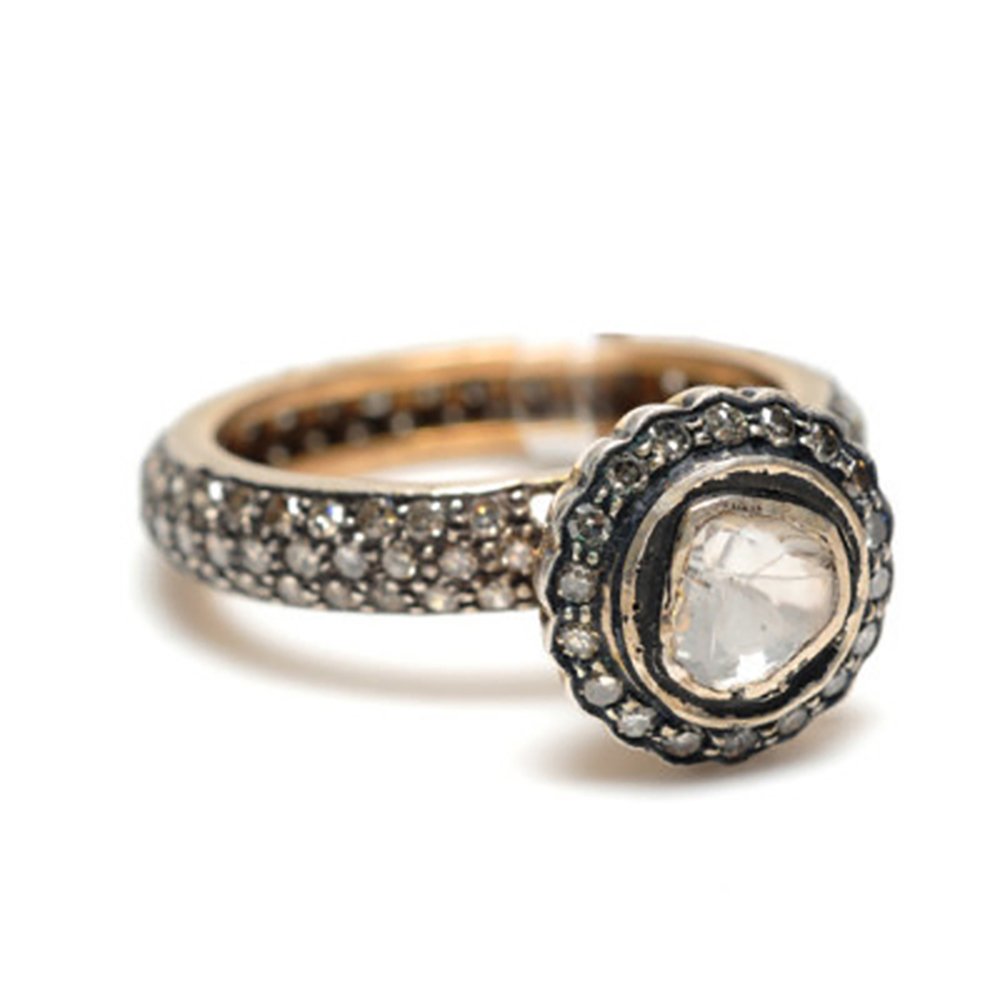 costozon victorian rings Total carat weight 2.1 TCW, 1.8 Carat Natural Rose cut Diamond and 0.3 Carat Polki Uncut Diamond Studded in 10.5 Gms 925 Sterling Silver vintage art deco jewelry Online with IGL Certification, Free Shipping, BIS Hallmark, 30 Day Easy Return