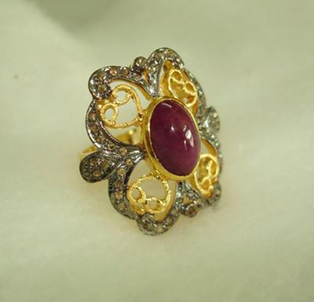 vintage engagement rings 2.5 Tcw Ruby Rose Cut Diamond 925 Sterling Silver victorian jewelry