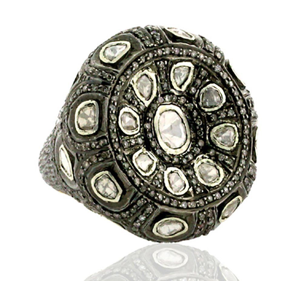 costozon vintage engagement rings Total carat weight 3.1 TCW, 2.1 Carat Natural Rose cut Diamond and Carat Studded in 15.5 Gms 925 Sterling Silver antique jewelry Online with IGL Certification, Free Shipping, BIS Hallmark, 30 Day Easy Return