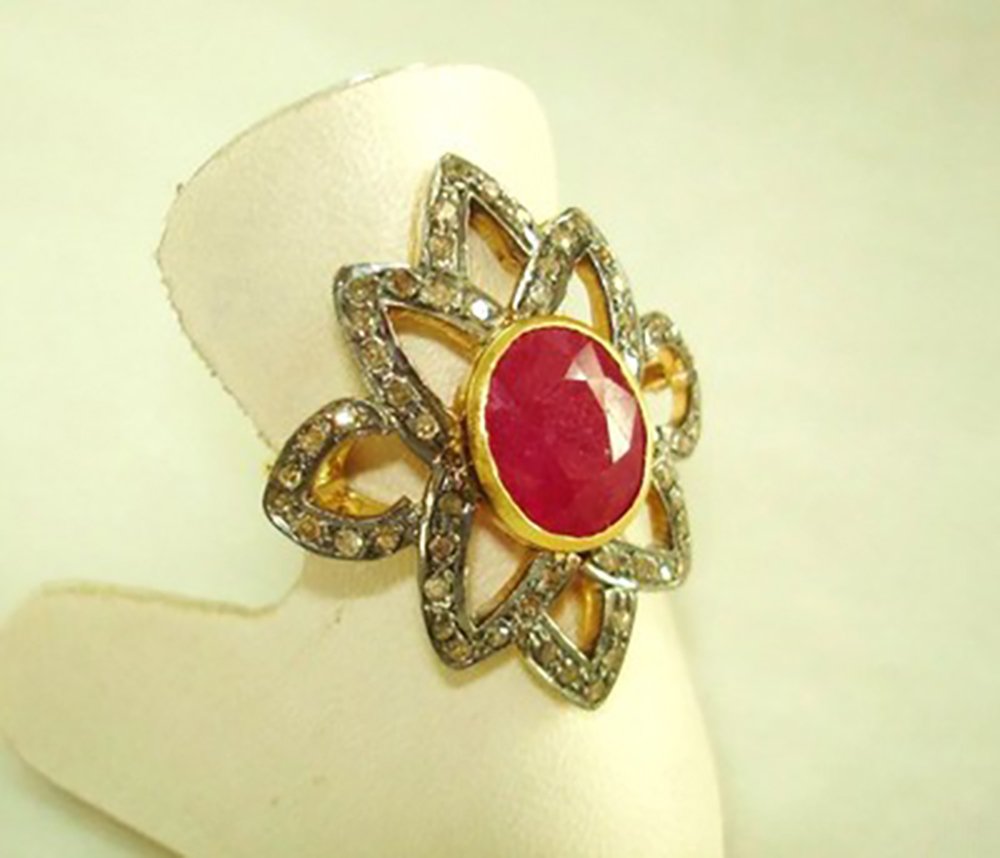 vintage engagement rings 3.2 Tcw Ruby Rose Cut Diamond 925 Sterling Silver fine antique jewelry