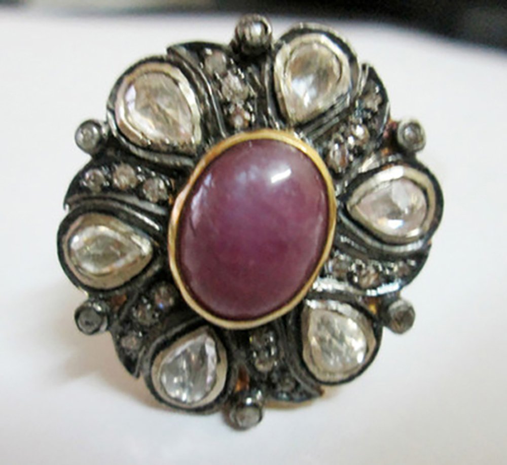 costozon vintage engagement rings Total carat weight 3.7 TCW, 0.6 Carat Natural Rose cut Diamond and 0.6 Carat Polki Uncut Diamond Studded in 6 Gms 925 Sterling Silver victorian jewelry Online with IGL Certification, Free Shipping, BIS Hallmark, 30 Day Easy Return