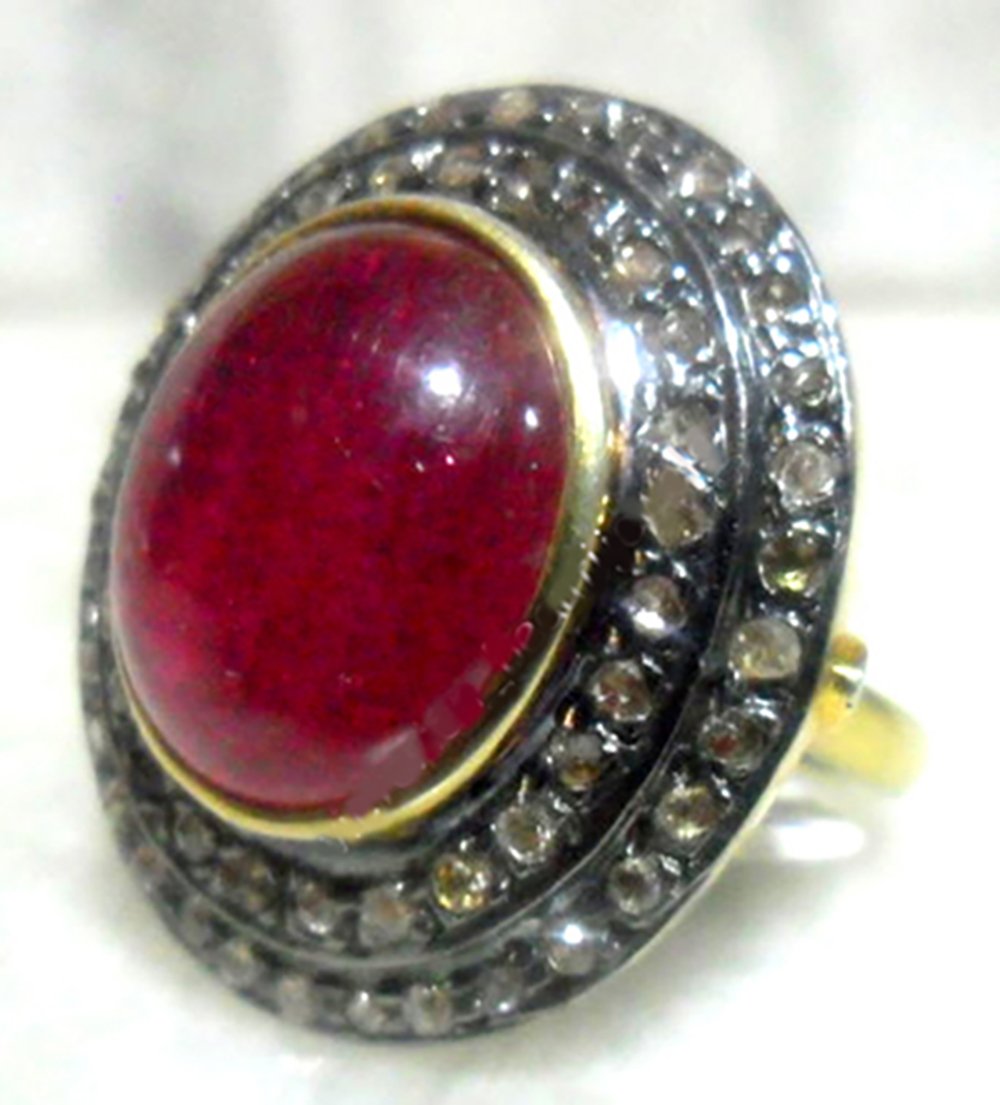 costozon vintage engagement rings Total carat weight 4.2 TCW, 1.4 Carat Natural Rose cut Diamond and 2.8 Carat Ruby Studded in 7 Gms 925 Sterling Silver vintage jewelry Online with IGL Certification, Free Shipping, BIS Hallmark, 30 Day Easy Return